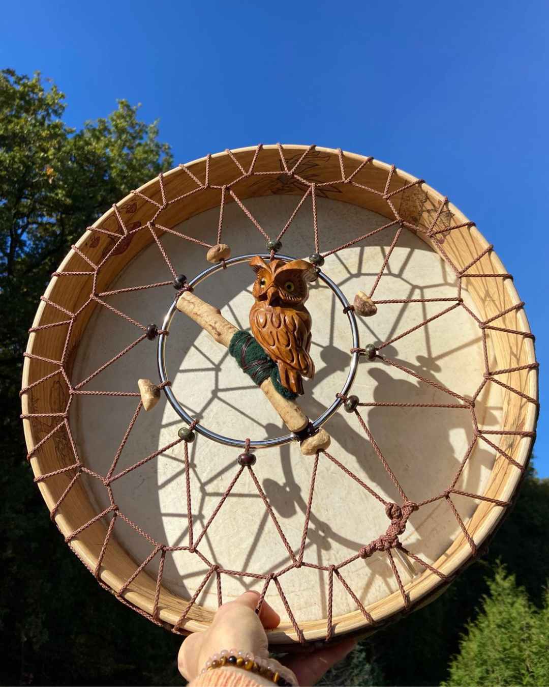 Ich fertige schamanische Rasseln, Trommeln, Räucherfächer und Ritualmesser in liebevoller Handarbeit – für deine Zeremonien, deine Heilkreise, dein persönliches Wirken. Jedes Stück entsteht in tiefer Verbindung mit den Elementen, den Mondzyklen und den spirituellen Kräften, die mich begleiten. Viele meiner Werke werden bewusst zum Neumond, Vollmond oder über einen ganzen Mondzyklus hinweg gefertigt, um ihre energetische Wirkung zu verstärken.